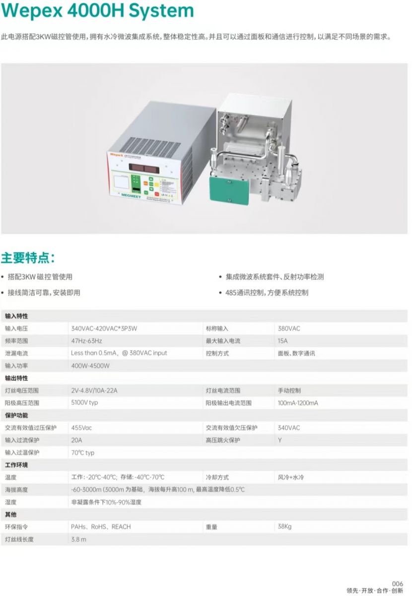 此電源搭配 3KW 磁控管使用,擁有水冷微波集成系統(tǒng),整體穩(wěn)定性高,并且可以通過面板和通信進(jìn)行控制,以滿足不同場景的需求。